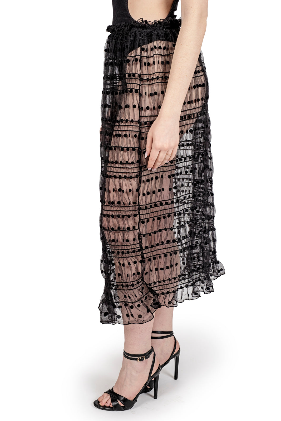 Materiali: tulle ricamato (100% Deadstock Luxury Fabric). Trasparente, leggero, ricami a pois e bande.