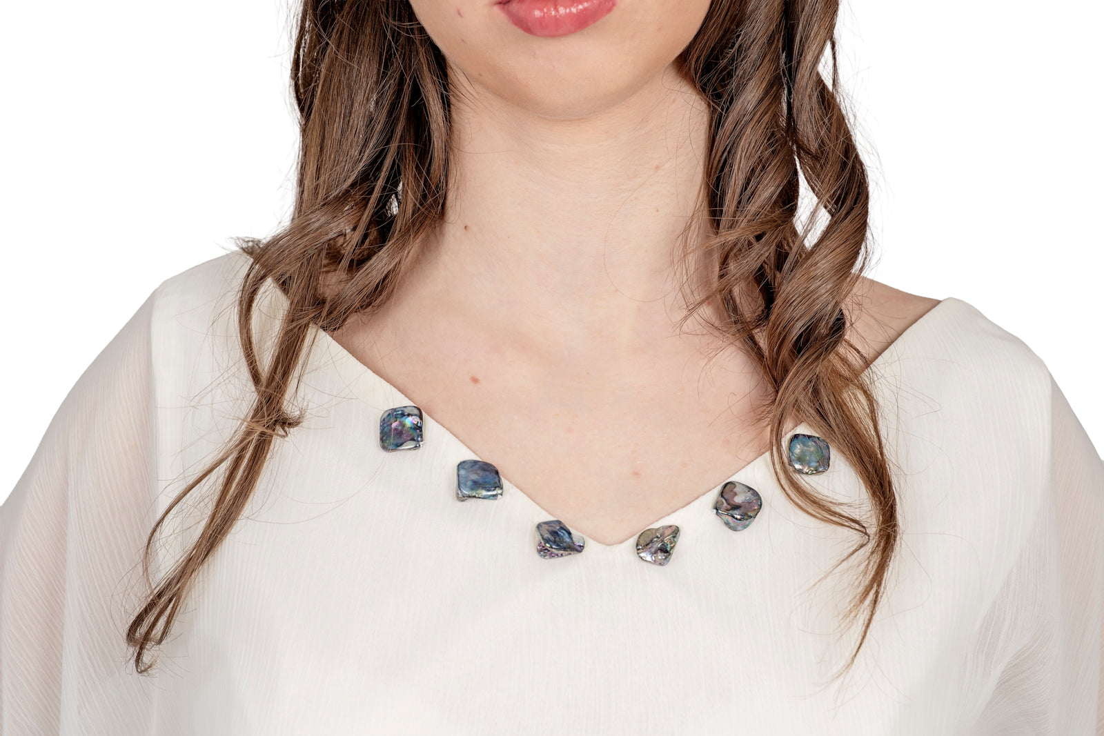 Materiali: georgette in poliestere, cotone e pietre.