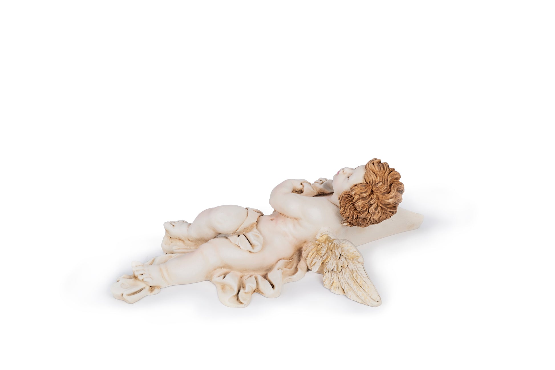 Angelo grande con ali aperte in polvere di marmo, dipinto a mano.