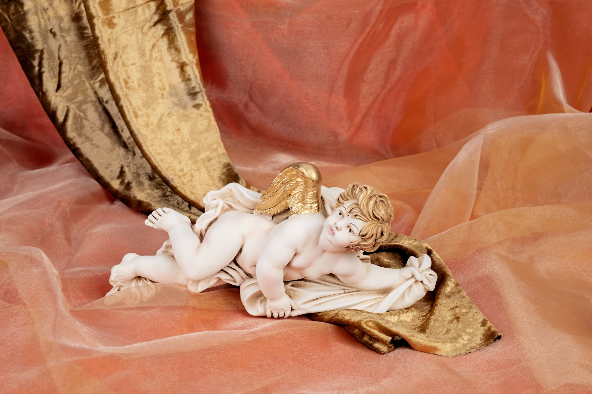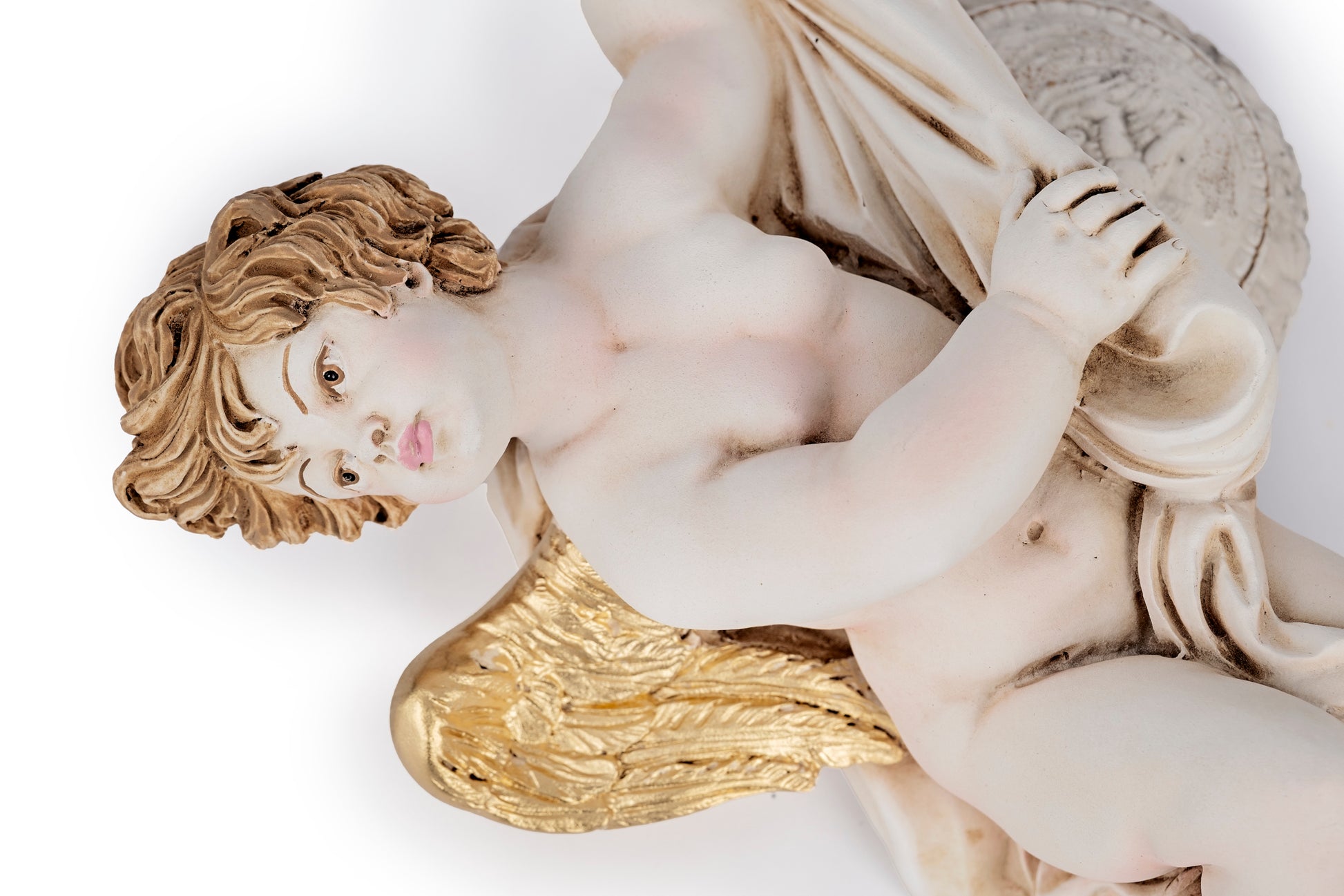 Angelo grande con ali chiuse in polvere di marmo, dipinto a mano.