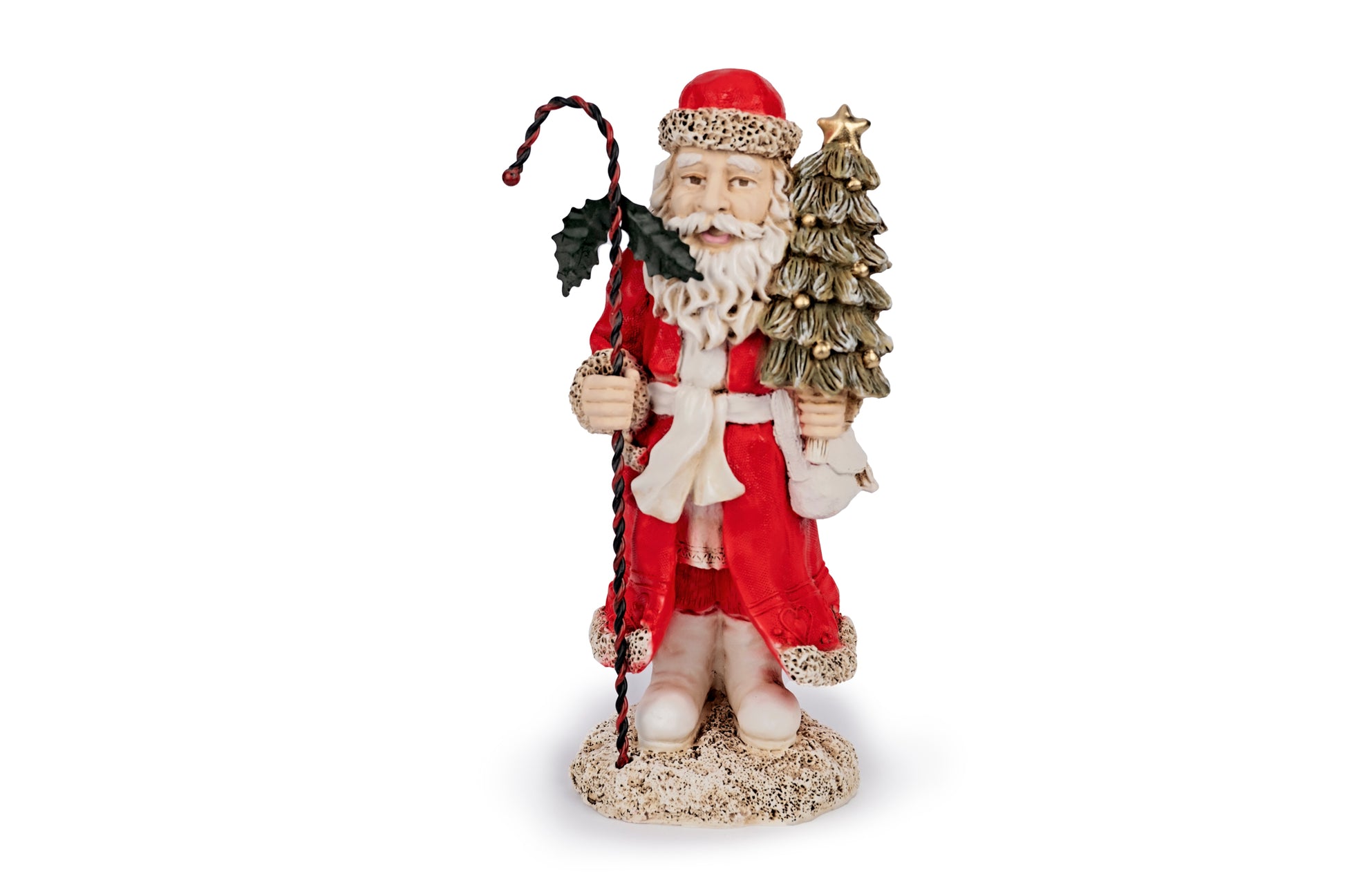 Babbo Natale con bastone e albero di Natale in polvere di marmo, dipinto a mano.
