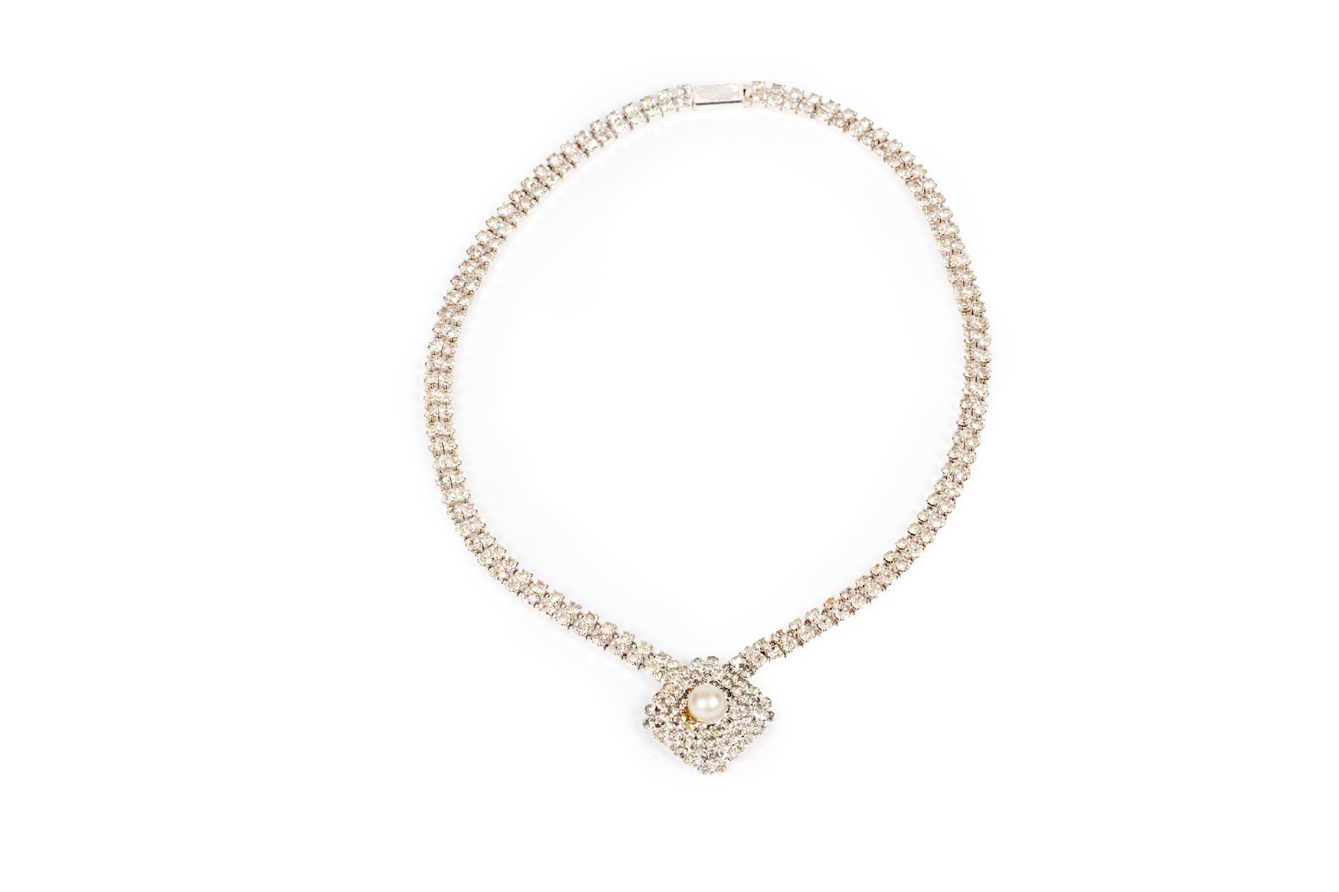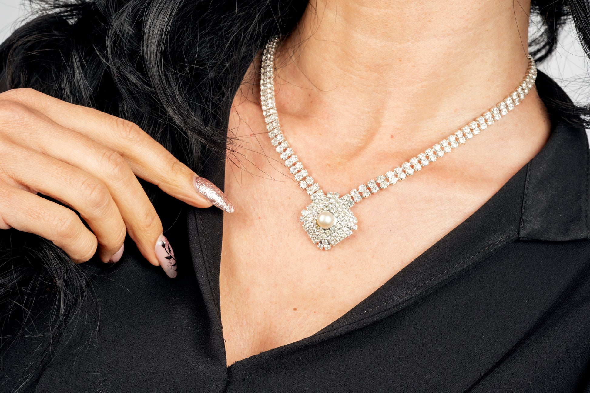 Collier luxury con cristalli e centrale in cristalli e perlina.