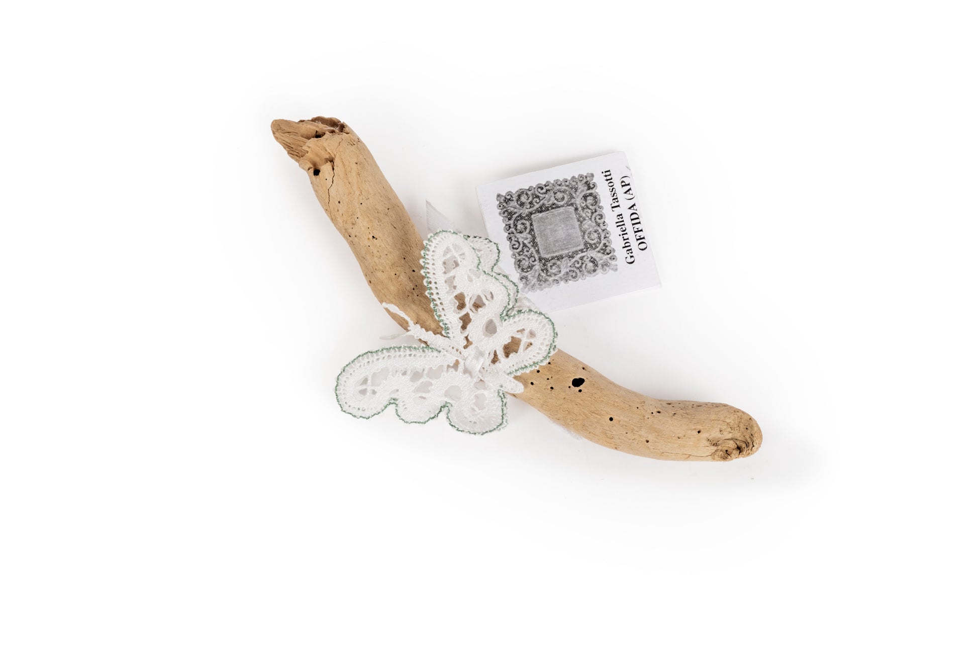 Decorazione farfallina tridimensionale in merletto a tombolo