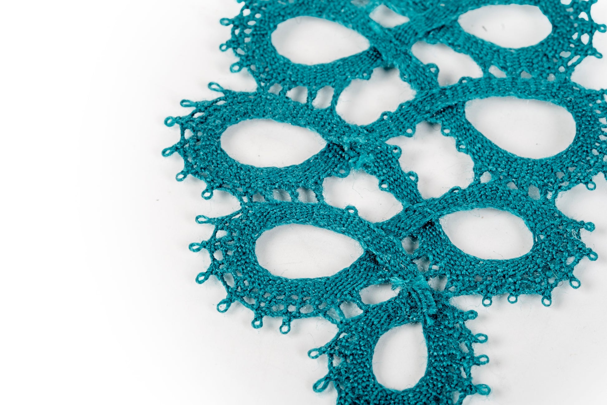 Tecnica utilizzata: merletto a tombolo, punto Rinascimento e mezzo punto.