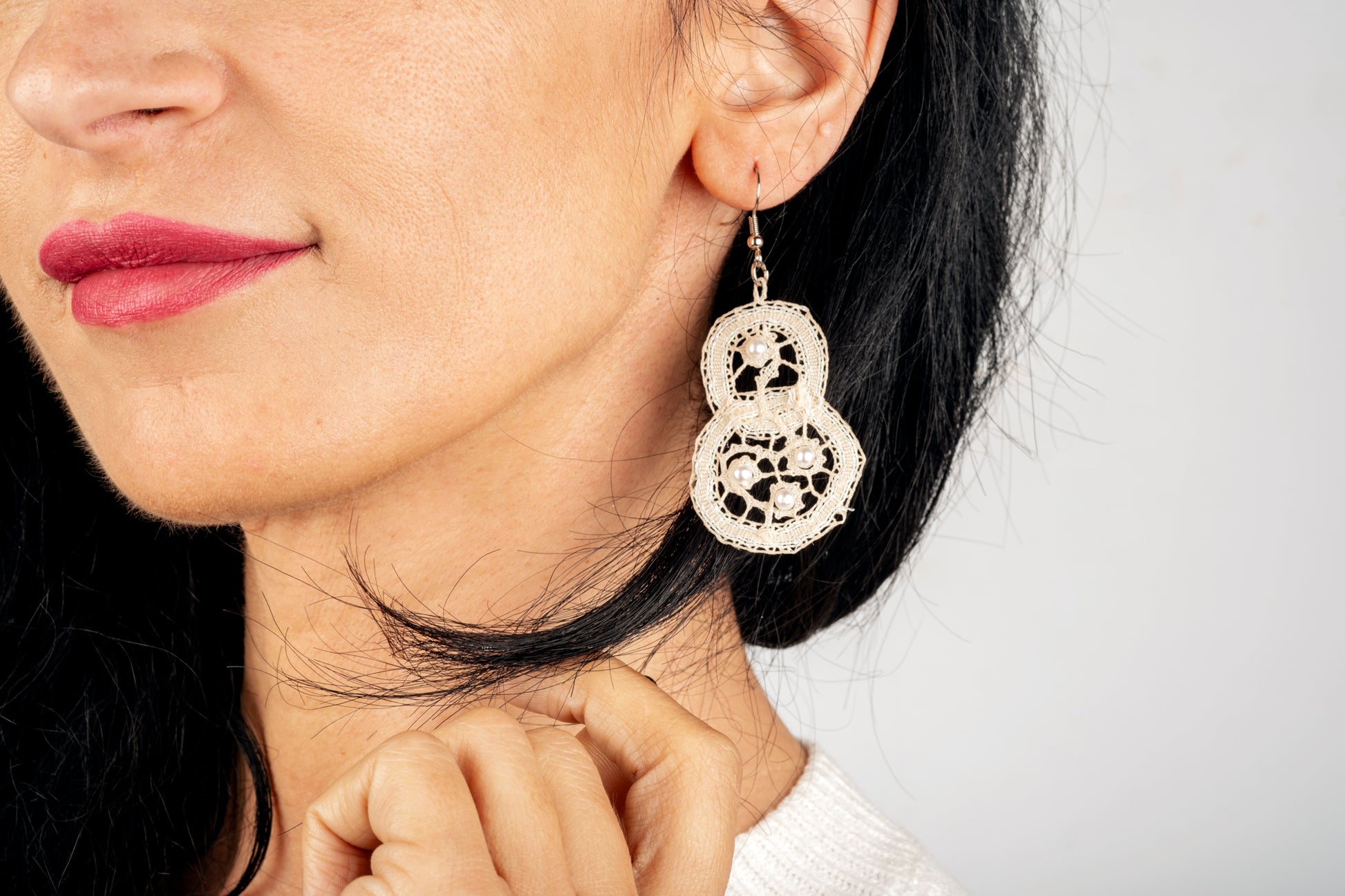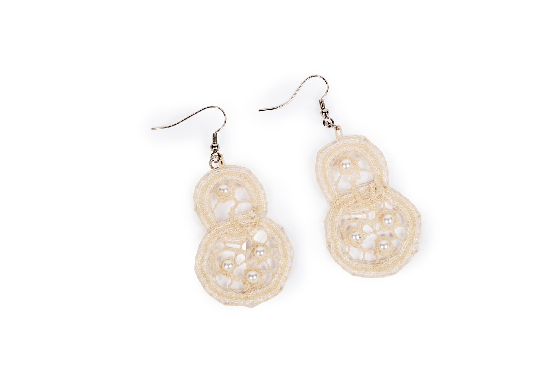 Orecchini in merletto seta e cotone con perline.