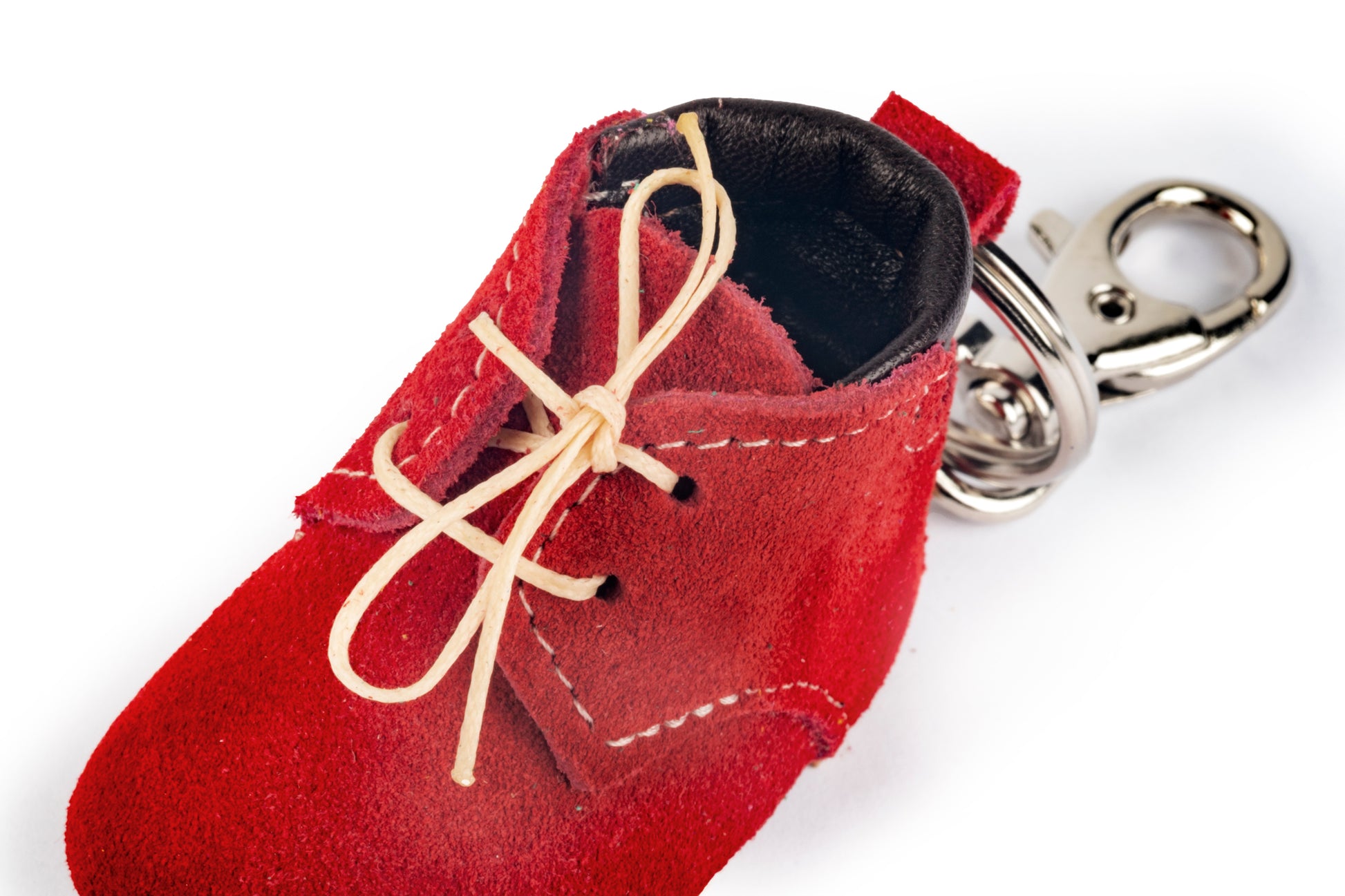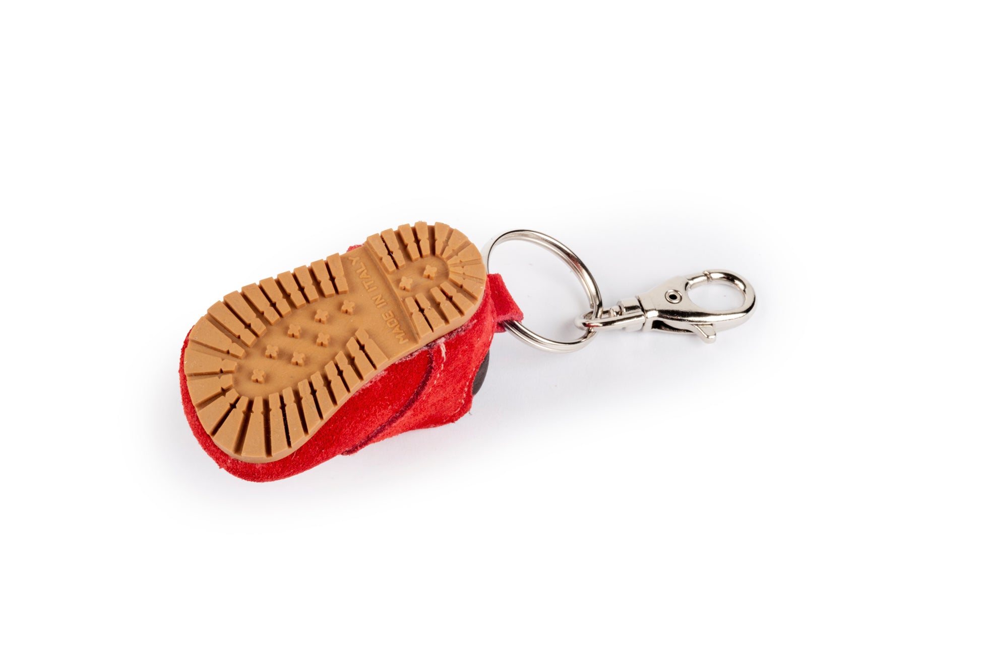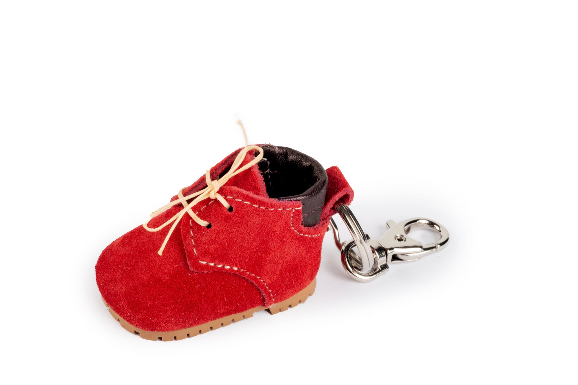 Portachiavi scarponcino rosso in pelle, con suola in gomma.