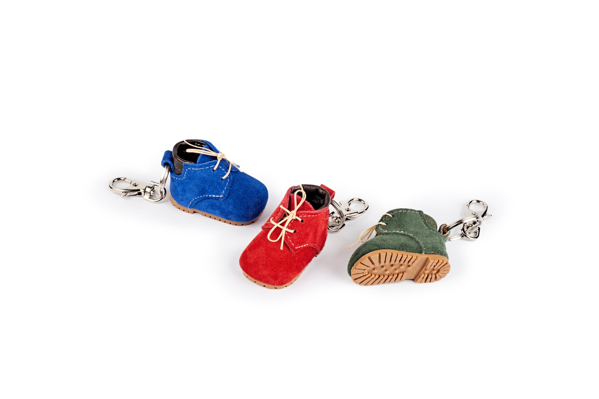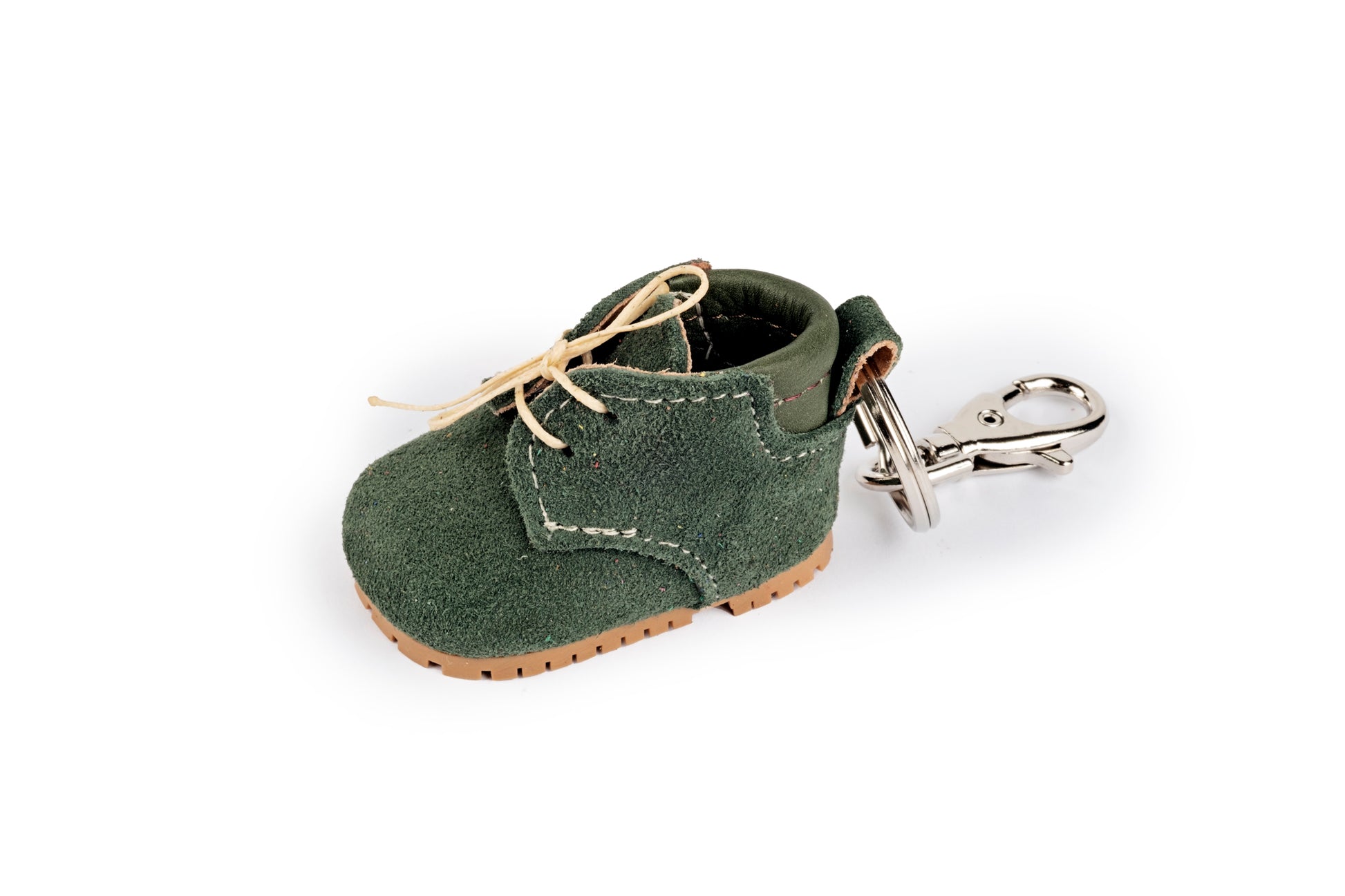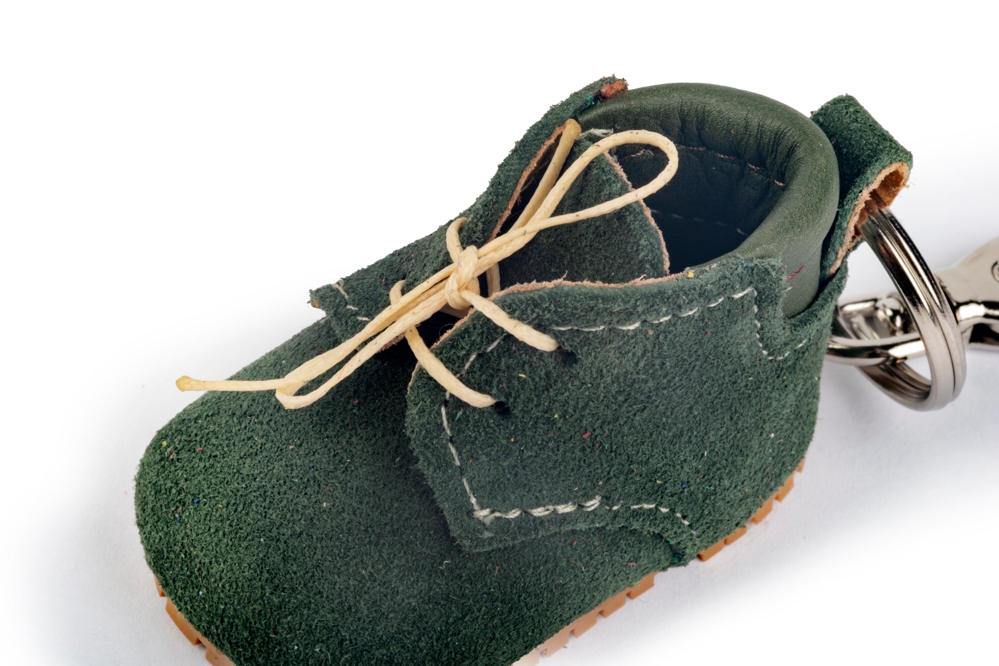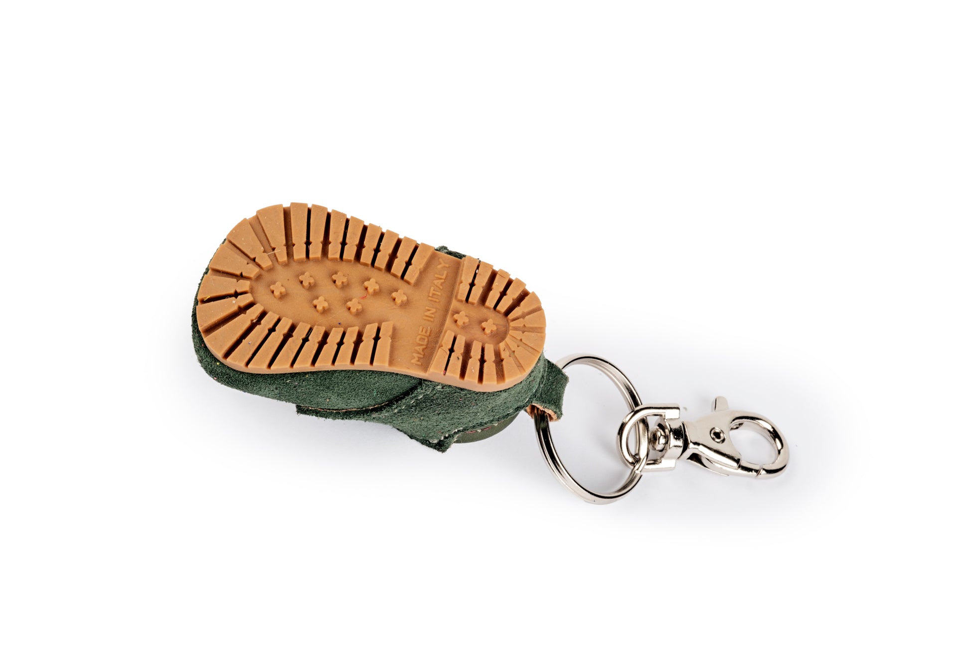 Portachiavi scarponcino verde in pelle con suola in gomma.