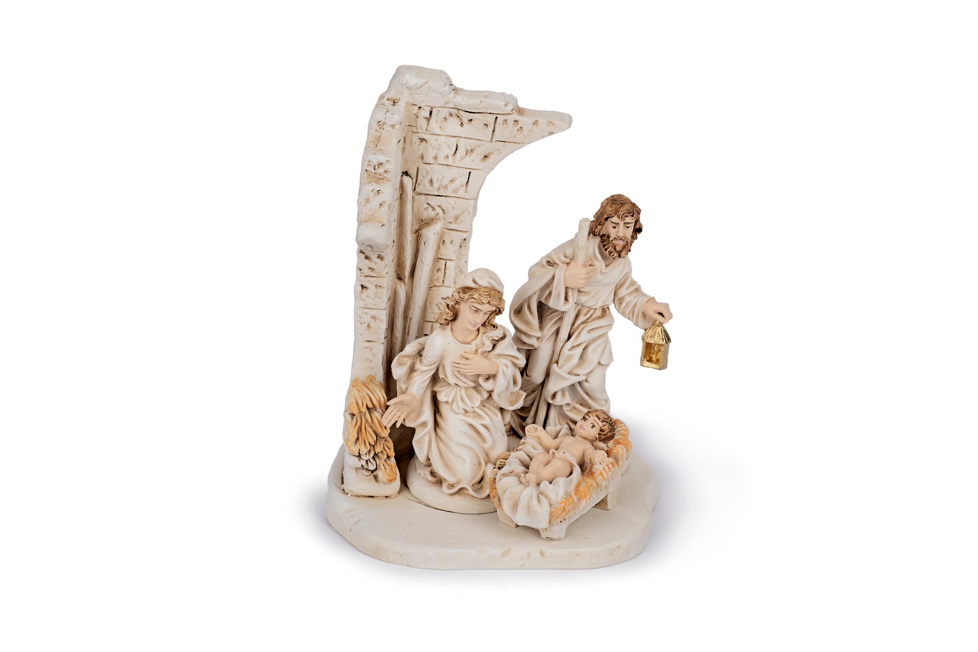 Presepe con muro in polvere di marmo, dipinto a mano.