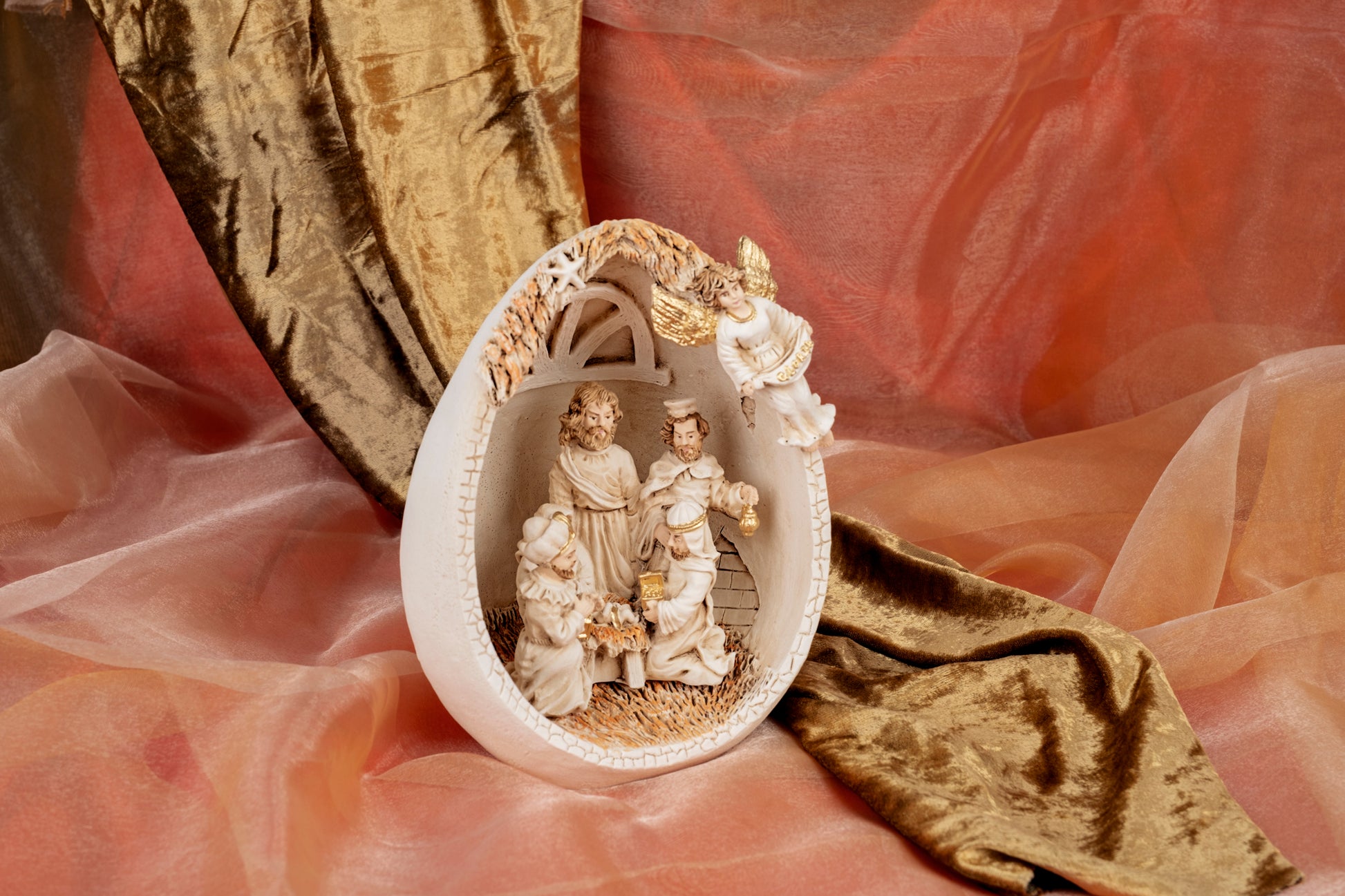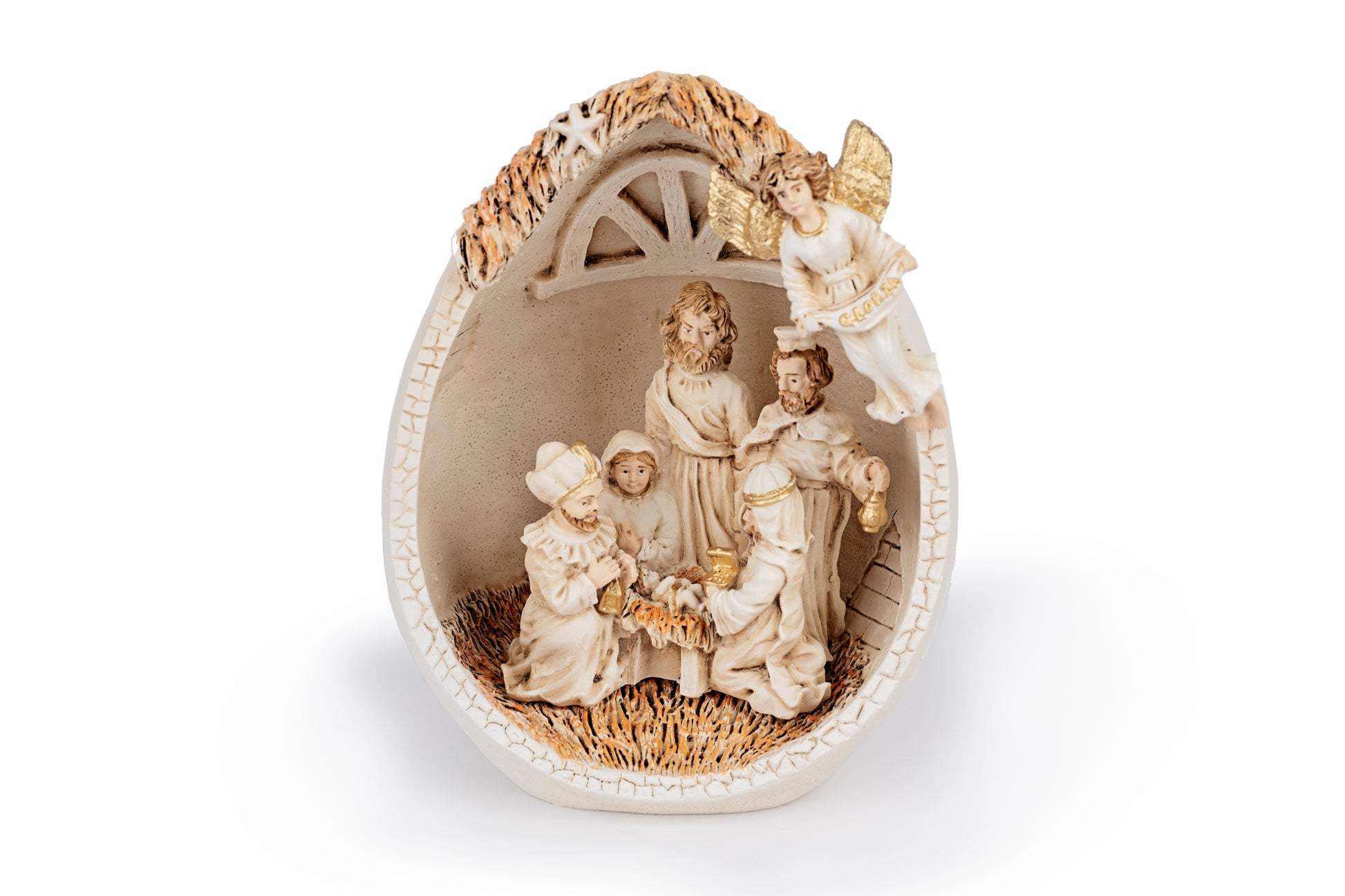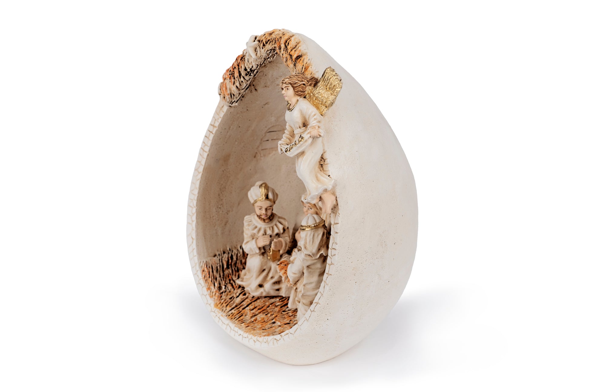 Presepe dentro uovo in polvere di marmo, dipinto a mano.